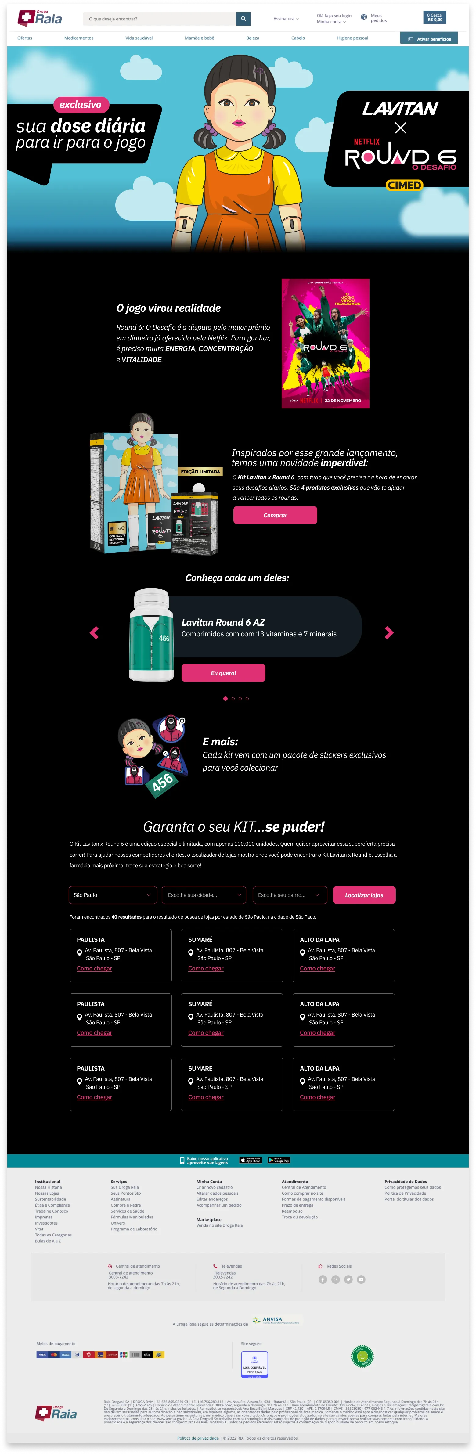 As users explore the landing page, they'll find not only details about the kit's components but also essential information about its availability in partner stores. This straightforward approach aims to enhance the connection between health and entertainment, offering consumers an integrated and intuitive experience as they discover and acquire the product inspired by the Round 6 universe.