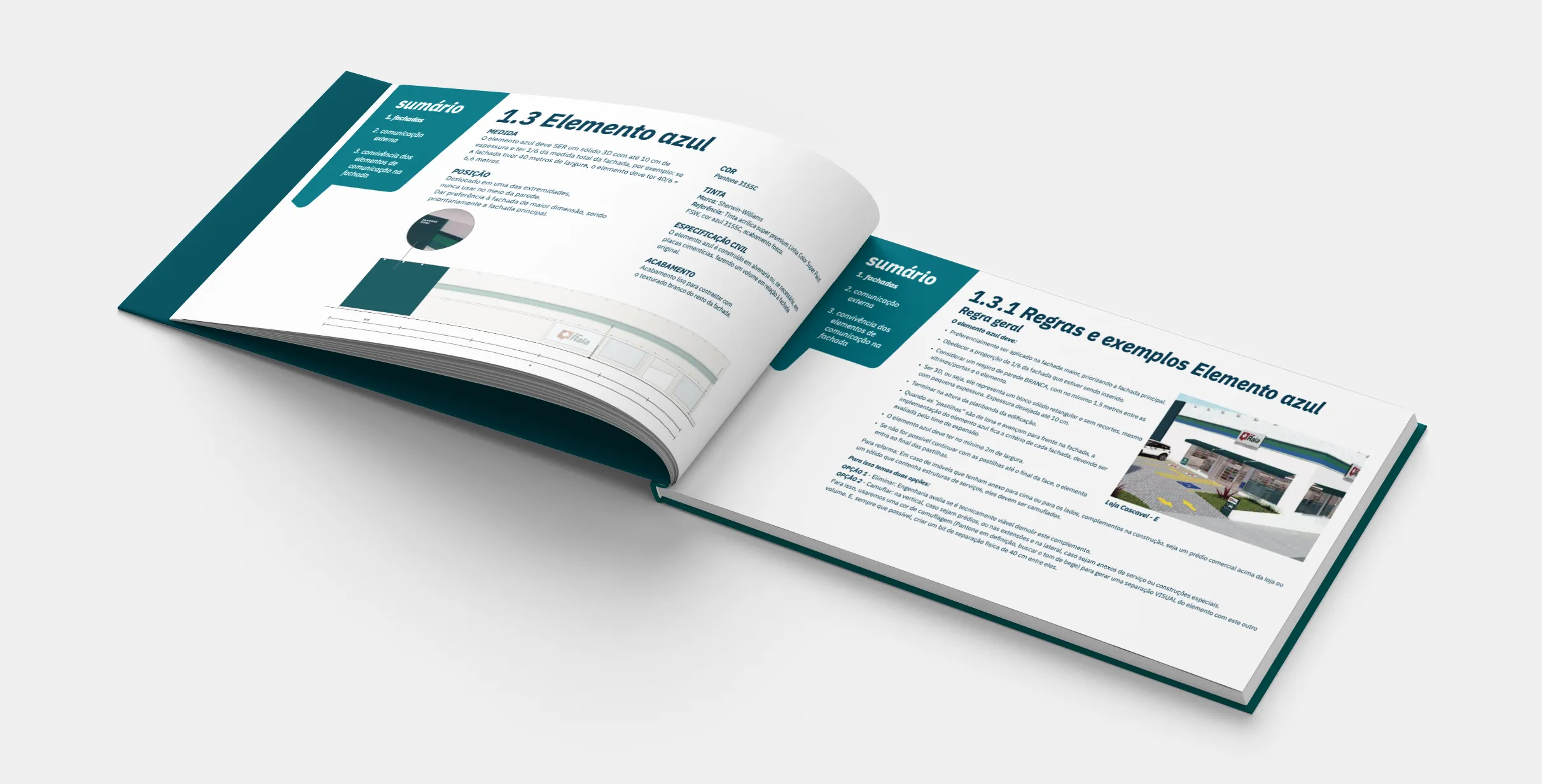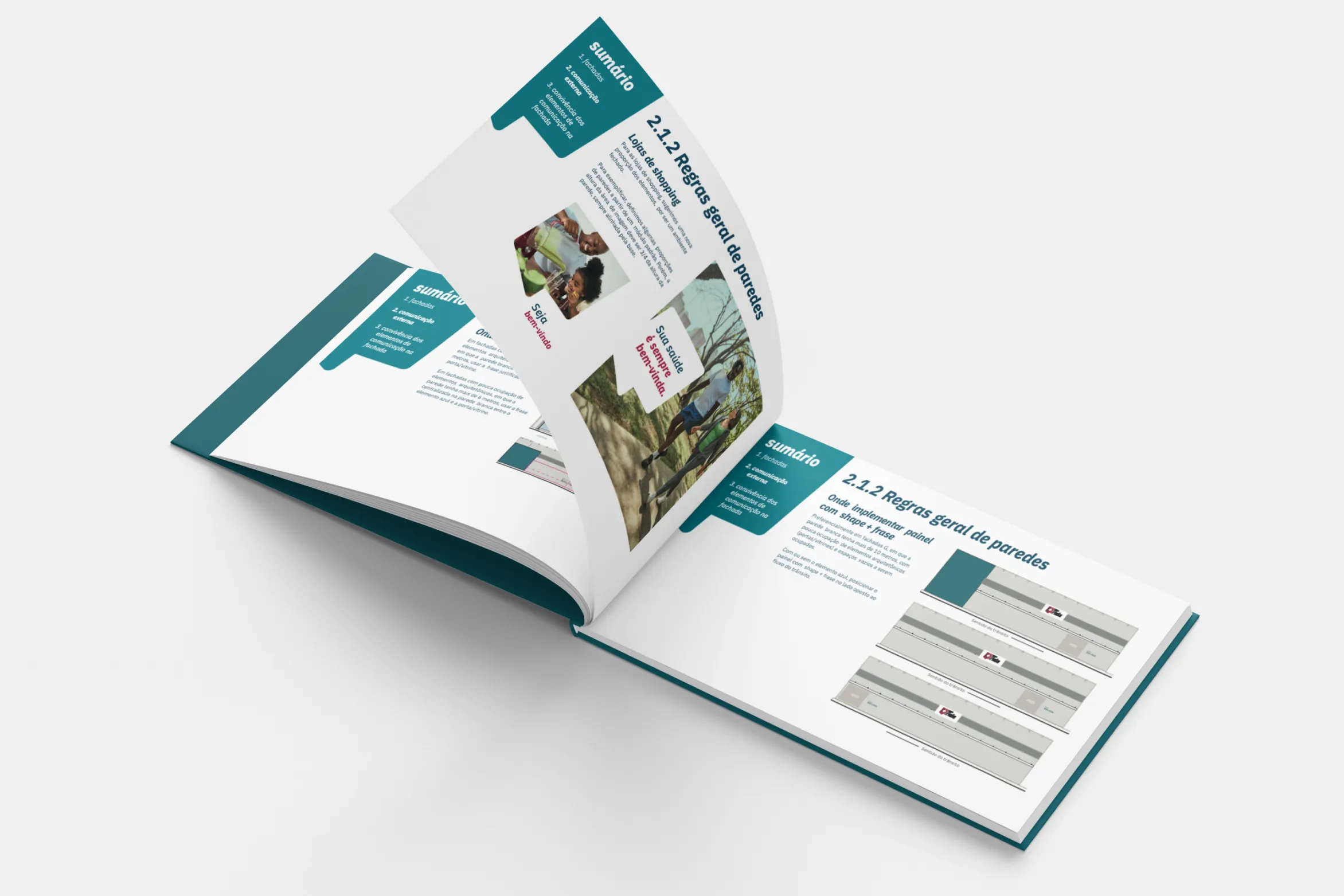 I was responsible for the design of an instructional booklet on construction and regulations regarding facades for Droga Raia. This quick-reference booklet is typically used by those overseeing construction or renovation projects. I employed a straightforward layout for easy readability and convenient access to information during consultations, ensuring a user-friendly tool that facilitates a clear understanding of the established guidelines.